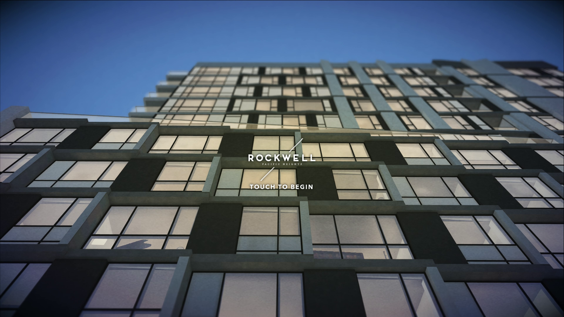 The touchscreen experience features the Rockwell building both as the primary method of navigation for plan exploration, and as an animated background while browsing the neighborhood, galleries, and videos.