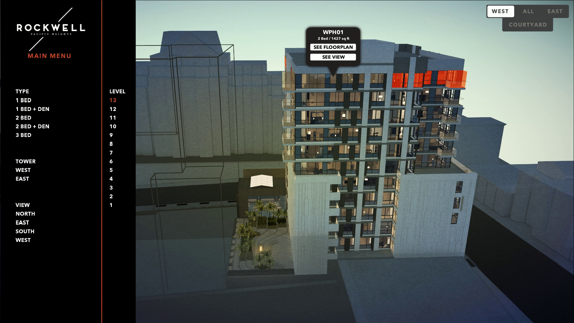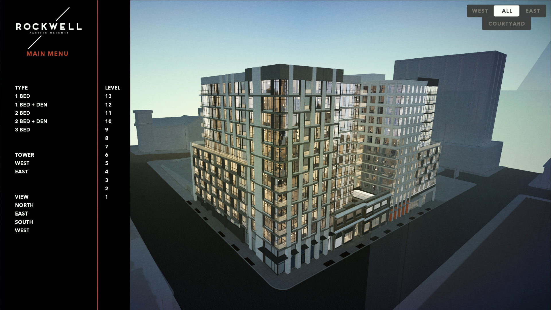 Rockwell is a real-time 3D interactive experience, featuring a virtual building model for unit and plan exploration.
